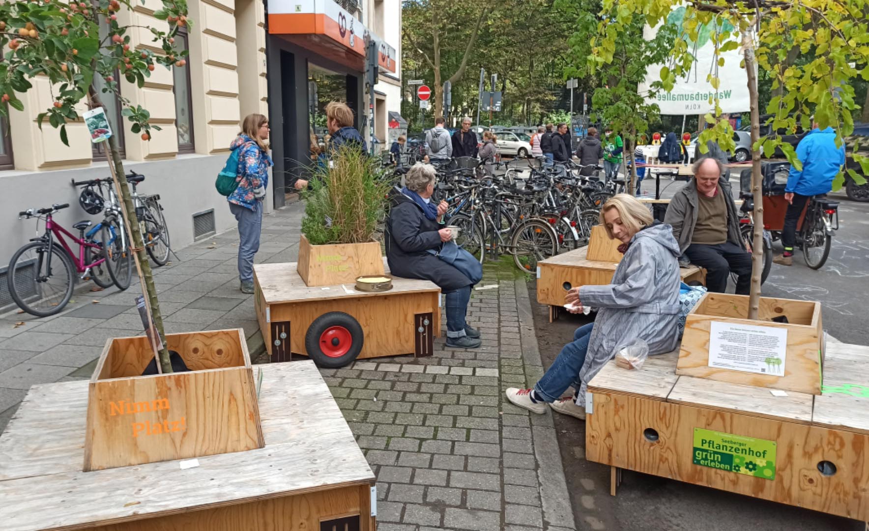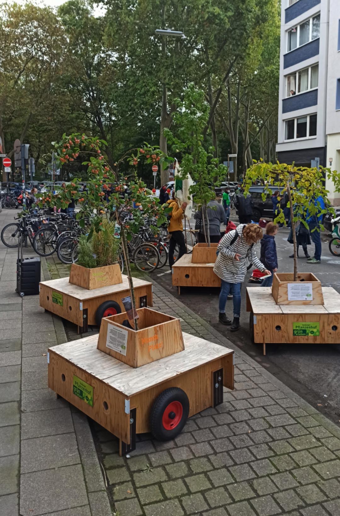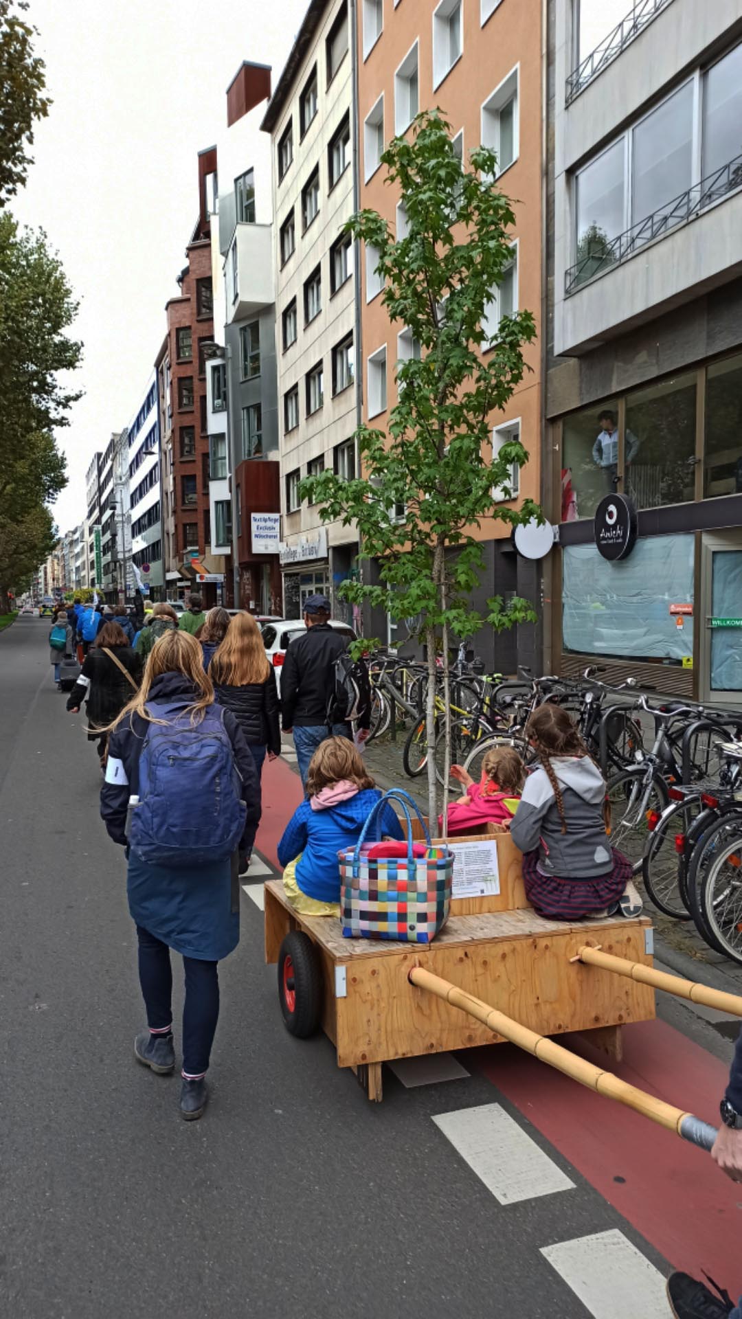 Seit letztem Sonntag steht die Wandderbaumallee nun an ihrem neuen Standort, die Boisseréestraße in der Nähe des Rathenauplatzes. Die Wanderung vom Eigelstein dorthin war wieder ein voller Erfolg.