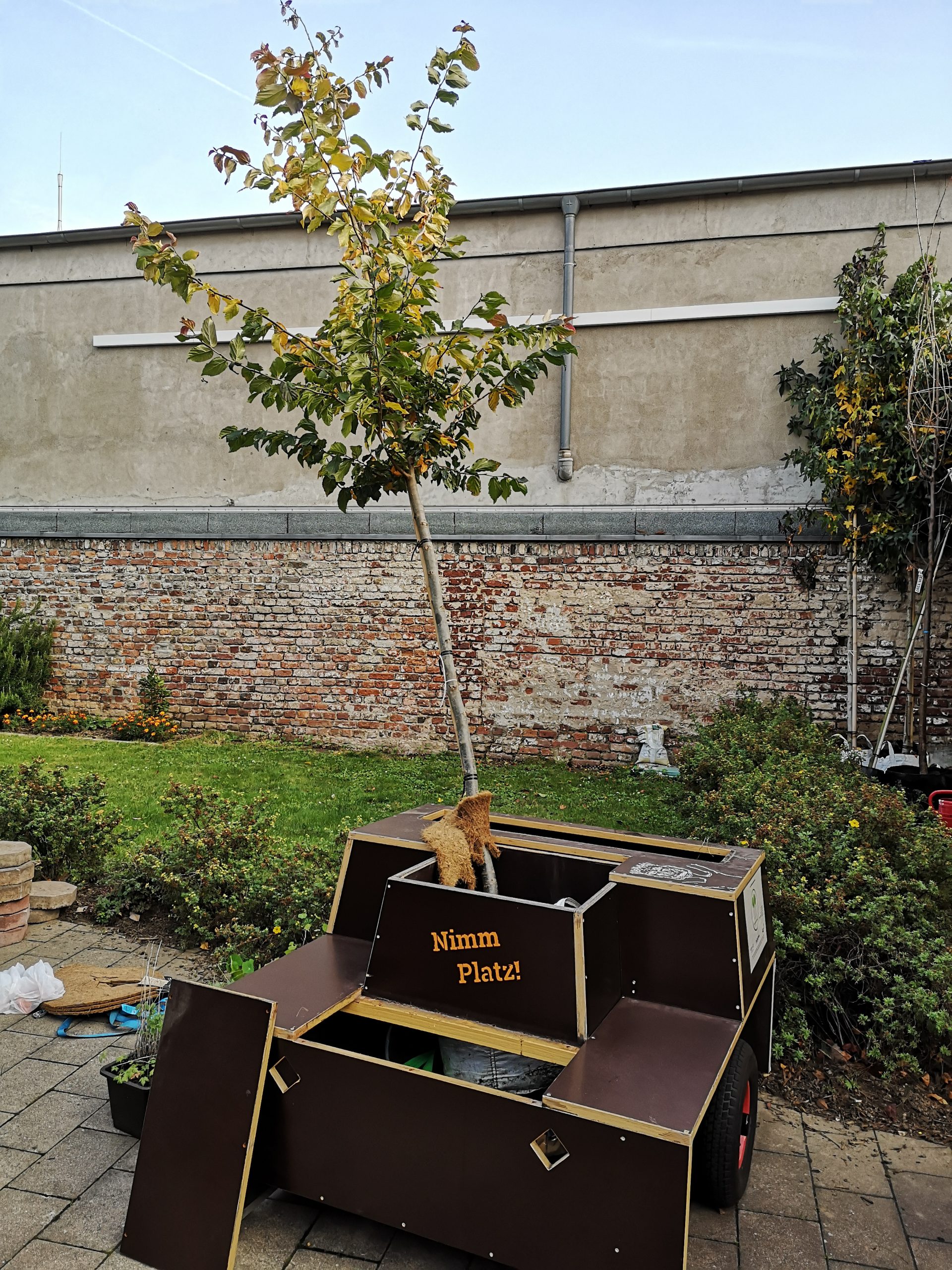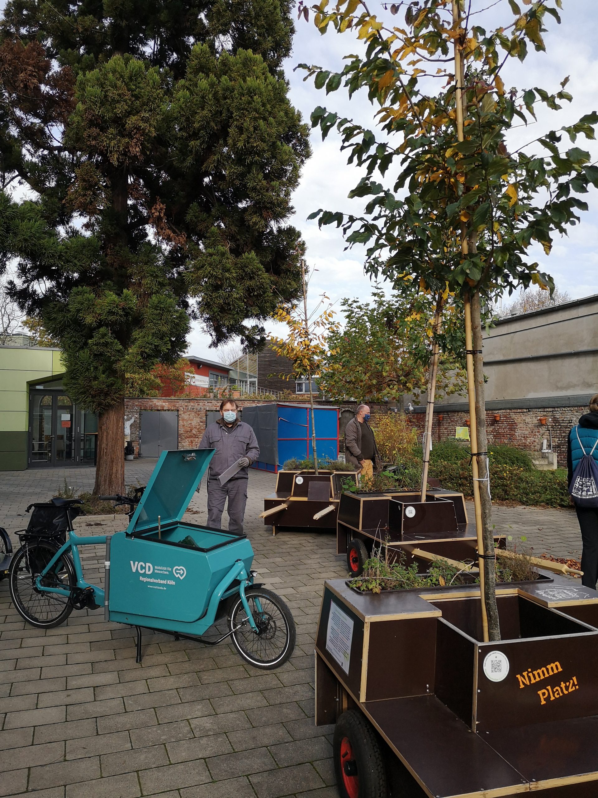 Erinnert ihr euch, dass wir letztens neue Bäume geliefert bekomme haben und diese schon vorfreudig auf ihren ersten Umzug gewartet haben? Für die Ersten war es dann am Sonntag endlich soweit, sie durften bei ihrer ersten Wanderung dabei sein! Sie stehen jetzt in der Marienstr. in Ehrenfeld und bringen den Anwohner*innen dort mit ihren letzten herbstlichen Blättern etwas Farbe in diese triste Zeit. Und vielleicht macht ihr ja auch mal einen kleinen Spaziergang bei diesem herrlichen Wetter und besucht unsere Bäume. Hier könnt ihr jetzt mit Abstand die beste Pause machen 🙂