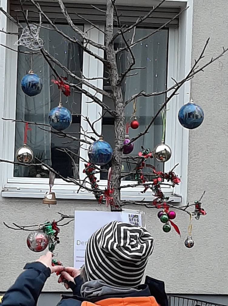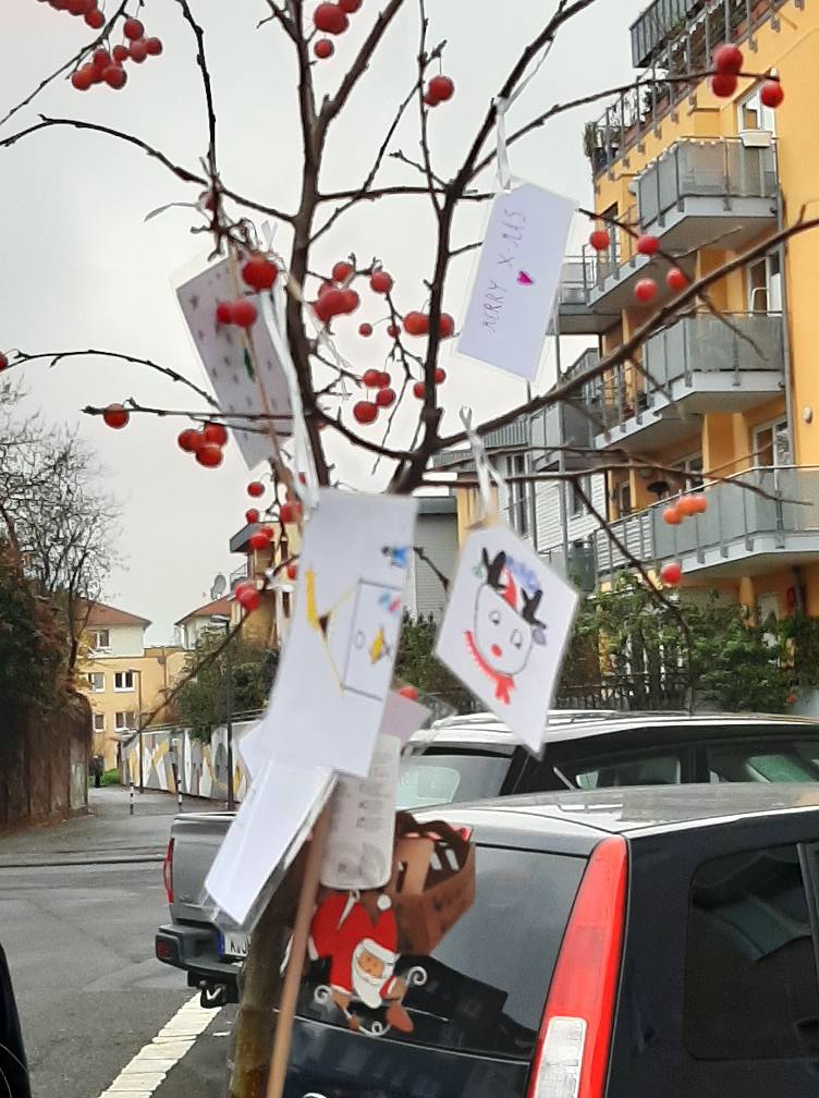 Am Ziel in der Gerhard-vom-Rath-Straße wurden die Module direkt schön weihnachtlich geschmückt und mit Bildern behangen. Zudem könnt ihr nun am Wunsch-Baum eure Wünsche fürs kommende Jahr aufhängen – wir drücken die Daumen, dass sie alle in Erfüllung gehen 🙂 Wir freuen uns sehr, dass unsere Bäume nun an ihrem jetzigen Standort Weihnachten feiern dürfen, ins neue Jahr rutschen können und vom Bürgerverein die nächsten Wochen gepflegt werden. Danke an alle Helfer*innen heute und in den nächsten Wochen! Und wir möchten auch der Nachbarschaft aus der Boisseréestr. nochmal Danke sagen, vor allem den Kindern, die so tolle Kunstwerke für die WBA gemalt haben!