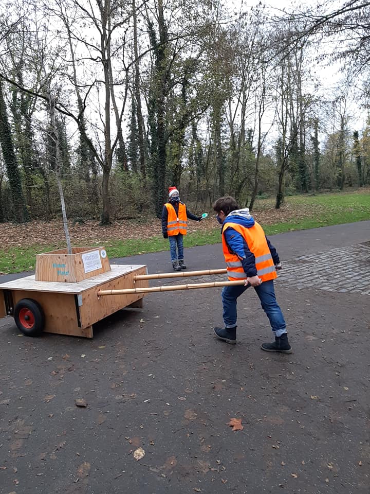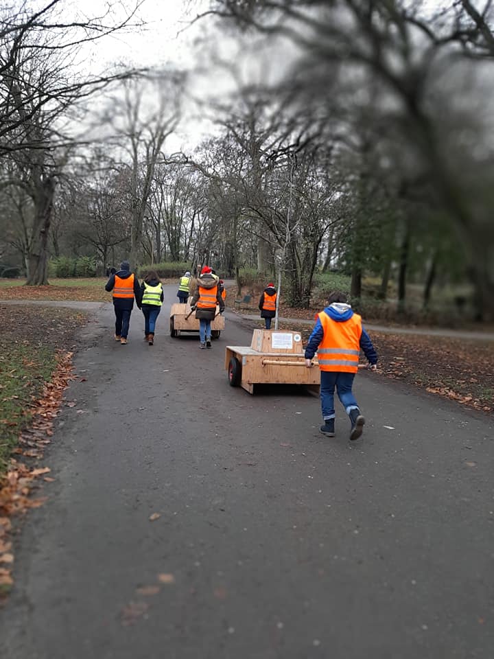 Wir sind wieder gewandert! Am 06.12. sind wir mit unseren vier Modulen aus der Boisseréestr. im Rathenauviertel nach Raderberg umgezogen. Zusammen mit dem Bürgerverein Raderberg und ‑thal haben wir die WBA durch die Straßen geschoben – wobei vor allem die Kinder tatkräftig angepackt haben.
