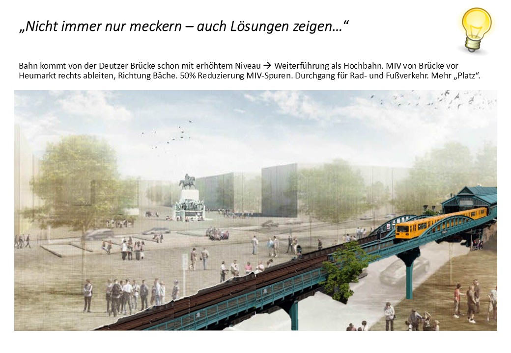 Im Rahmen der Diskussion um die Ost-West-Achse habe ich 2018 die Idee einer Hochbahn eingebracht — die Resonanz war damals schon ablehnend.
