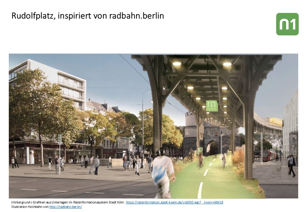 Könnte eine Seilbahn nicht auch eine Lösung für die Ost-West-Achse sein? Ehr nicht, da es keine durchgängige Verbindung, bzw. keine direkte Anbindung an die Stadtbahn gibt. Aber eine Idee, die nicht nur “oben bleiben” denkt, sondern auch noch “hochgelegt”, ist ja nicht ganz abwegig.